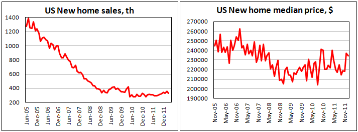 По данным Бюро переписи и Министерства жилищного строительства и городского развития, объем продаж на первичном рынке жилья составил 328 000 за март 2012 г., на 7,1% меньше, чем в предыдущем месяце.