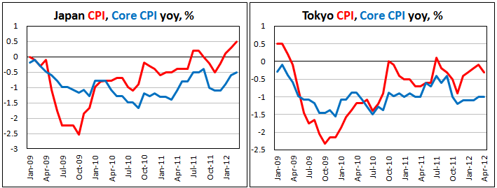 Годовой индекс потребительских цен Японии повысился на 0,5% за март 2012 г. по сравнению с увеличением на 0,3% месяцем ранее, сообщает Управление статистики. Прогнозировался рост показателя на 0,4%.