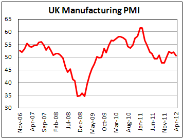 Индекс PMI от Markit/ CIPS для производственной сферы упал до отметки 50,5 в апреле по сравнению с 51,9 в марте.