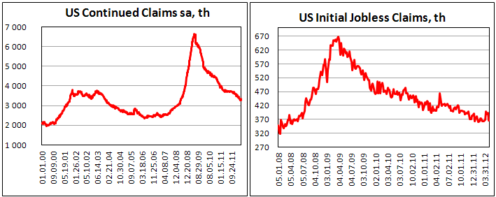 Число повторных заявок на получение пособия по безработице снизилось за неделю к 21 января с 3 329 000 до 3 276 000. Прогнозировалось снижение показателя к 3 311 000.
