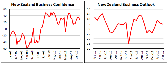 Индикатор уверенности в деловой среде, публикуемый Национальным банком Новой Зеландии, составил 27,1 пункта в апреле 2012 г. по сравнению с 35,8 пункта в марте.