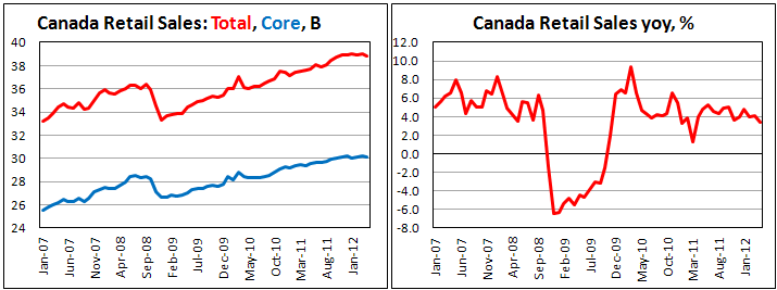 В годовом выражении розничные продажи в Канаде повысились на 3,4%.