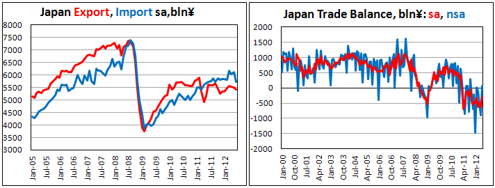 Скорректированное сальдо внешней торговли товарами составило -300,8 млрд. иен в июне против -618,3 млрд. иен в мае. Показатель прогнозировался на уровне -402,0 млрд. иен.