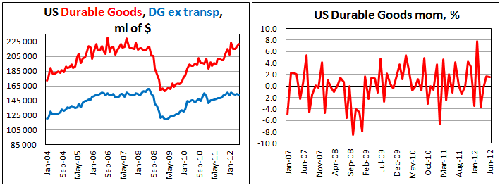 Объем заказов на товары длительного пользования (Durable goods orders) в США увеличился на 1,6% за июнь 2012 г. в месячном исчислении.