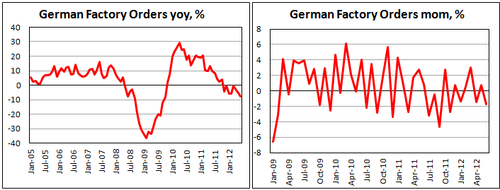 По данным Федерального министерства экономики и технологий Германии, промышленные заказы упали на 1,7% в июне. Аналитики прогнозировали снижение показателя лишь на 0,8%.
