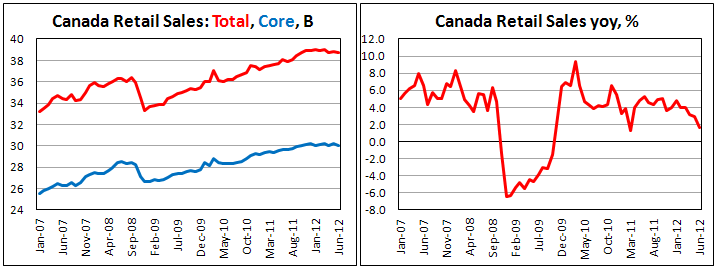 По данным Statistics Canada, розничные продажи с учетом сезонных колебаний снизились на 0,4% до $38,7 млрд. в июне.