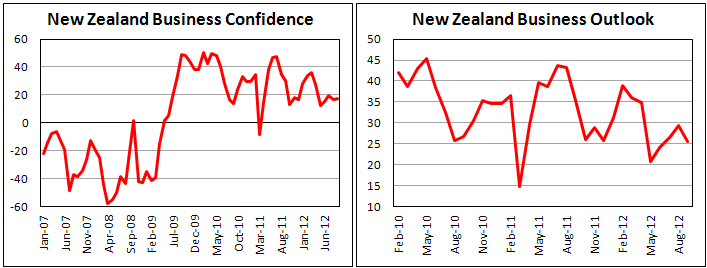 Индикатор уверенности в деловой среде, публикуемый Национальным банком Новой Зеландии, составил 17,2 пункта в сентябре 2012 г. по сравнению с 17,0 пункта в августе.