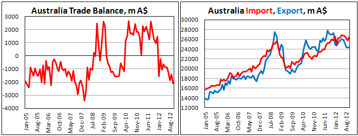 - Дефицит торгового баланса Австралии увеличился в октябре