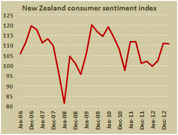 Индекс потребительской уверенности, рассчитанный Westpac Banking Corporation, составил 110,8 пункта за 1 квартал 2013 г. по сравнению с 111,1 пункта в четвертом квартале прошлого года.
