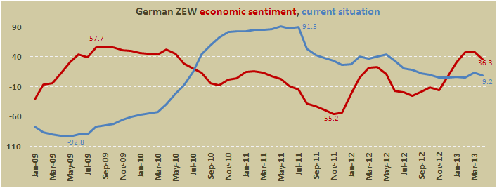 По данным ZEW, индикатор настроений потребителей в Германии упал до отметки 36,3 в апреле по сравнению с 48,4 в марте.
