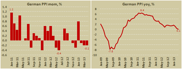 По данным Федерального статистического управления, индекс производственных цен Германии снизился на 0,2% за апрель 2013 г. в месячном исчислении.