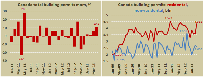 Объем выданных разрешений на строительство в Канаде вырос на 10,5% за апрель 2013 г., сообщает Управление статистики.