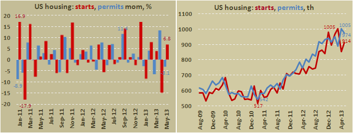 Объем выданных разрешений на строительство в США составил 974 000 за май, сообщает Бюро переписи. Это на 3,1% меньше, чем в предыдущем месяце (1 005 000).