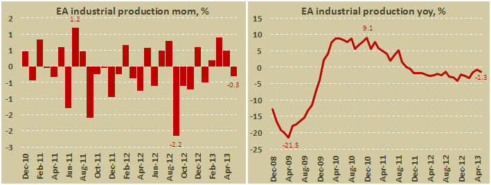 - Объем промышленного производства еврозоны снизился в мае