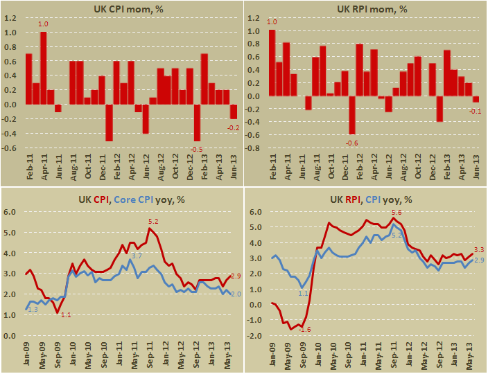 В месячном выражении потребительские цены в Великобритании упали на 0,2% в июне после роста на 0,2% в предыдущем месяце.