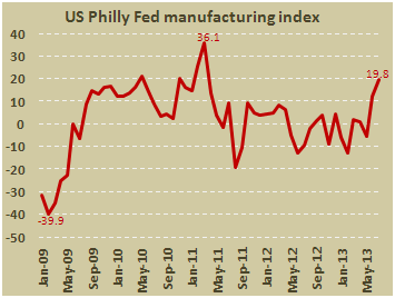 Производственный индекс ФРС-Филадельфии возрос до отметки 19,8 в июле по сравнению с 12,5 в июне. Отметим, что индекс оказался на рекордно высоком уровне с марта 2011 года.