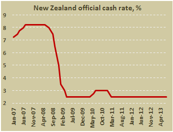 Как и ожидалось, Резервный Банк Новой Зеландии на очередном заседании по кредитно-денежной политике принял решение о сохранении основной процентной ставки на уровне 2,5%.