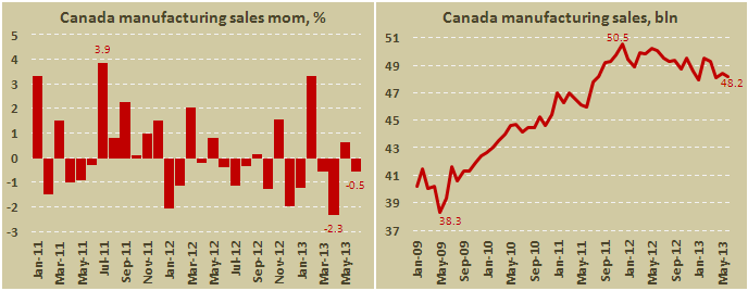 Объем продаж в производственном секторе Канады сократился на 0,5% в июне после увеличения на 0,7% в предыдущем месяце.