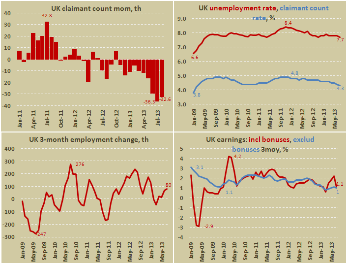 Безработица в Великобритании снизилась до отметки 7,7% за три месяца к июлю по сравнению с 7,8% в предыдущем периоде. Число безработных по ILO сократилось на 24,0 тыс. до 2,487 млн. человек.