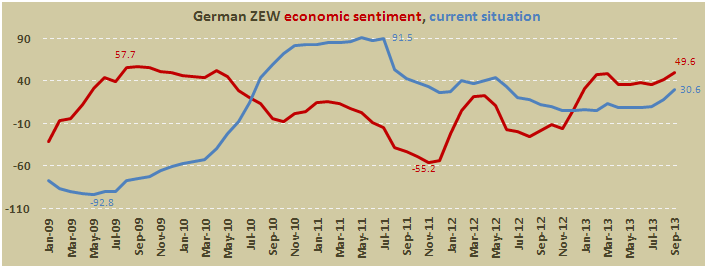 По данным института ZEW, индекс настроений в деловой среде Германии составил 49,6 пункта за сентябрь по сравнению с 42,0 пункта месяцем ранее.