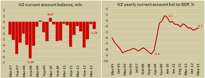 Дефицит платежного баланса Новой Зеландии составил 1,25 млрд. долл. за второй квартал 2013 г., сообщает Управление статистики. В предыдущем квартале дефицит был на уровне 0,42 млрд. долларов, а во втором квартале прогнозировалось увеличение до 1,85 млрд. долл.