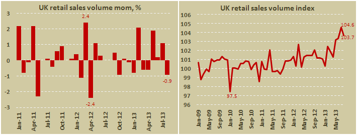 - Розничные продажи в Великобритании упали на 0,9% в августе