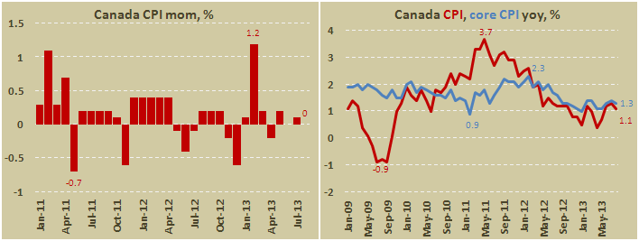 Индекс потребительских цен Канады составил 0,0% за август в месячном исчислении, сообщает Национальное статистическое управление. Прогнозировалось увеличение показателя на 0,1%. Напомним, что в предыдущем месяце цены повысились на 0,1%.
