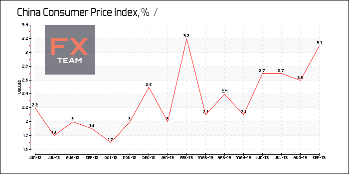 Индекс потребительских цен в Китае составил 3,1% за сентябрь 2013 г. в годовом исчислении по сравнению с 2,6% в предыдущем месяце, сообщает Национальное бюро статистики.
