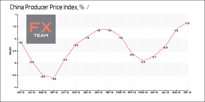 Индекс цен производителей снизился на 1,3% за сентябрь в годовом исчислении при предыдущем значении -1,6%. Годовой индекс производителей прогнозировался на уровне -1,4%.