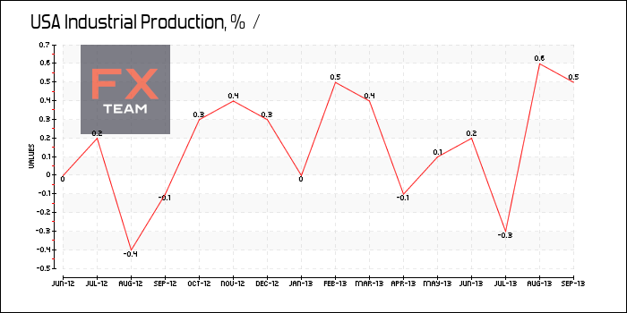 Объем промышленного производства США увеличился на 0,6% за сентябрь 2013 г. в месячном исчислении, сообщает Федеральная резервная система. Аналитики прогнозировали повышение показателя на 0,5% в сентябре по сравнению с ростом на 0,4% в августе.