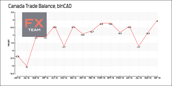 По данным Статистического управления Канады дефицит баланса внешней торговли составил 0,4 млрд. долларов за сентябрь 2013 г. Прогнозировался дефицит на уровне 1,2 млрд. долларов по сравнению с отрицательным сальдо 1,1 млрд. долларов в предыдущем месяце.