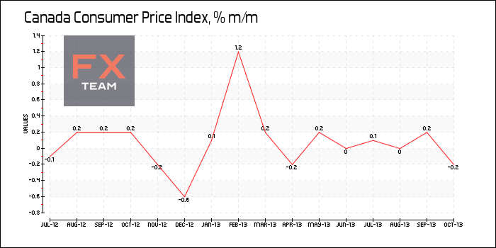 В месячном выражении потребительские цены в Канаде снизились на 0,2% в октябре после повышения на 0,2% в предыдущем месяце.