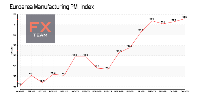 Индекс менеджеров по закупкам, основной показатель производственной активности, вырос до отметки 51.6 в ноябре по сравнению с 51.3 в октябре. Последнее значение было пересмотрено в сторону повышения с предварительной оценки до 51.5.