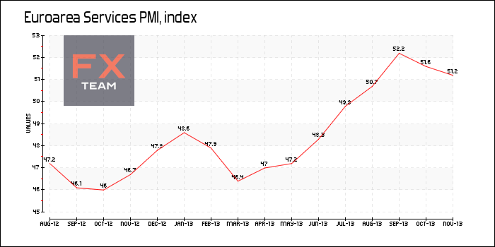 В то же самое время индекс активности для сектора услуг снизился до 51.2 в ноябре с 51.6 в октябре. Предварительные значения находились на отметке 50.9.