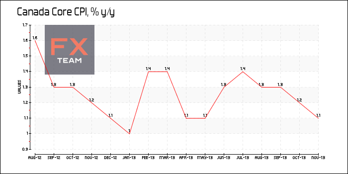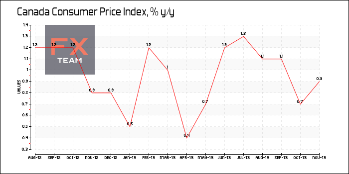 Индекс потребительских цен вырос до 0.9% за 12 месяцев к ноябрю, следуя за 0.7% ростом в октябре. Ноябрь стал седьмым месяцем из последних 13, когда индекс потребительских цен показывал годовой темп роста менее чем 1%, сообщает агентство Statistics Canada.