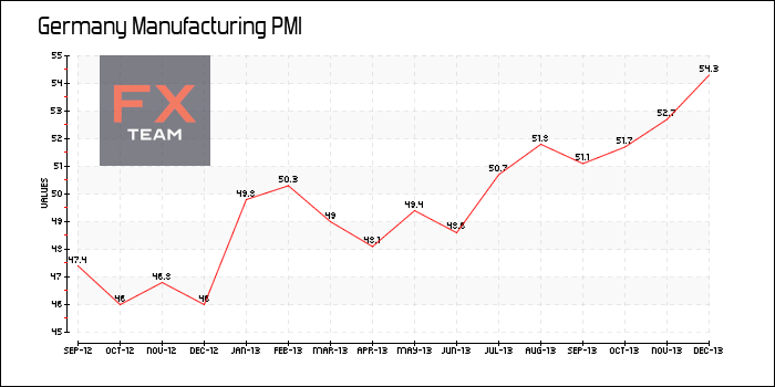 При этом производственный индекс PMI в Германии повысился до отметки 54,3 в декабре по сравнению с 52,7 в ноябре. В то же время, индекс PMI для производственного сектора Франции упал до 47,0 в декабре по сравнению с 48,4 в предыдущем месяце.