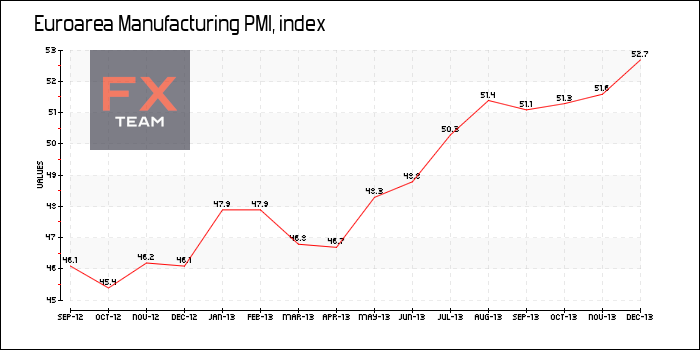 Индекс PMI для производственного сектора Еврозоны возрос до 52,7 в декабре по сравнению с 51,6 в ноябре.