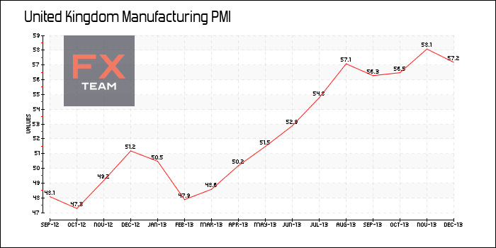 - Индекс PMI для производственного сектора Великобритании упал до 57,3 в декабре