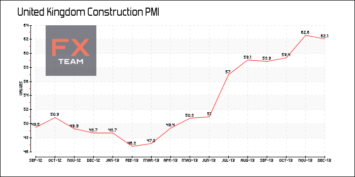 Индекс PMI для строительного сектора от Markit/CIPS упал до отметки 62,1 в декабре по сравнению с 62,6 в ноябре. Тем не менее, значение индекса выше отметки 50,0 свидетельствует о росте сектора.