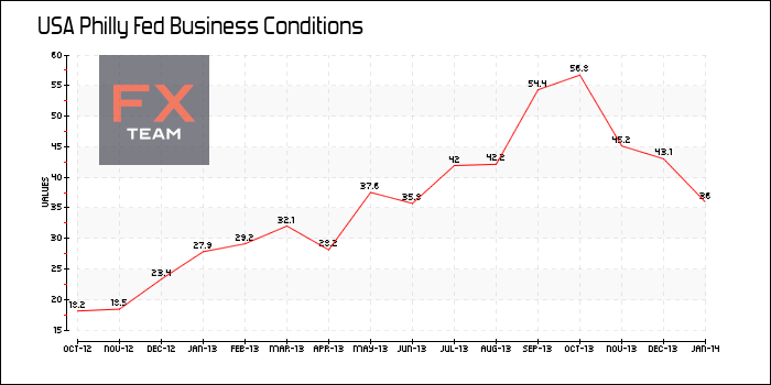 Индекс деловой активности ФРС Филадельфии снизился с 44,8 пункта до 34,4 пункта за январь. Индекс занятости повысился с 4,4 пункта до 10,0 пункта.