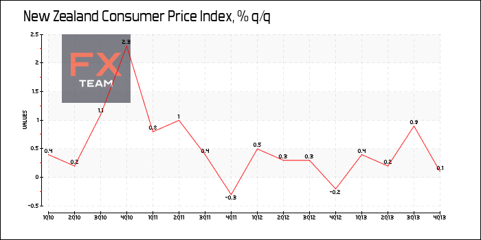 Потребительские цены в Новой Зеландии выросли на 0.1% с учетом сезонной коррекции в четвертом квартале 2013 года по сравнению с предыдущими тремя месяцами, сообщает Статистическое управление.