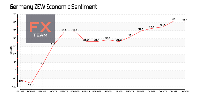 Индекс ожиданий инвесторов и аналитиков снизился до отметки 61.7 в январе с 7-летних максимумов, которые находились на уровне 62 в декабре. Экономисты прогнозировали рост до отметки 64.