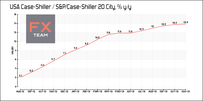 В годовом выражении индекс цен на жилье повысился на 13,7% в ноябре по сравнению с ростом на 13,6% в октябре.