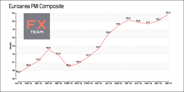 Композитный индекс PMIЕврозоны вырос до отметки 52.9 в январе с 52.1 в предыдущем месяце, сообщил в своем исследовании Markit.