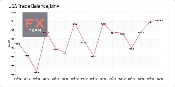 По данным Бюро переписи и Бюро экономического анализа дефицит торгового баланса США составил $38.7 млрд. за декабрь 2013 г. по сравнению с дефицитом $34.56 млрд. в предыдущем месяце. Аналитики прогнозировали отрицательное сальдо на уровне $35.8 млрд.