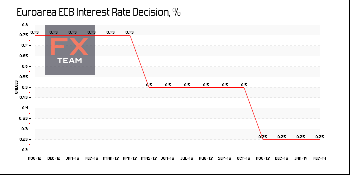На очередном заседании по кредитно-денежной политике Совет управляющих Европейского центрального банка принял решение о сохранении основной процентной ставки по операциям рефинансирования на уровне 0,25%. Депозитная ставка и ставка по кредитам ЕЦБ также были оставлены на прежнем уровне 0,00% и 0,75%, соответственно.