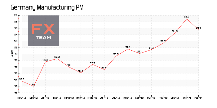 - Производственный индекс PMI в Германии упал до 54,7 в феврале