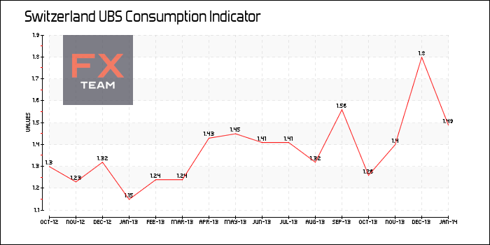 Индикатор потребительской активности в Швейцарии, снизился к отметке 1.44 в январе по сравнению с 1.81 в декабре. Большинство субиндексов показали снижение частного потребления в течение месяца.