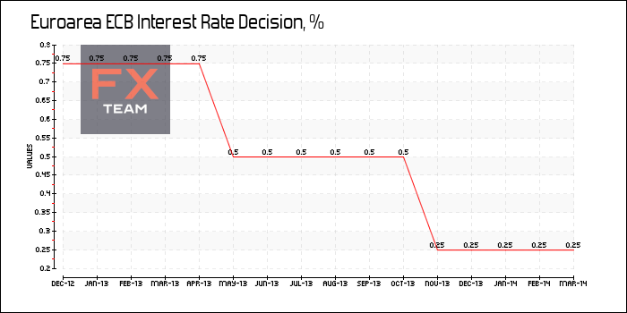 На очередном заседании по кредитно-денежной политике Совет управляющих Европейского центрального банка принял решение о сохранении основной процентной ставки по операциям рефинансирования на уровне 0,25%. Депозитная ставка и ставка по кредитам ЕЦБ также были оставлены на прежнем уровне 0,00% и 0,75%, соответственно.