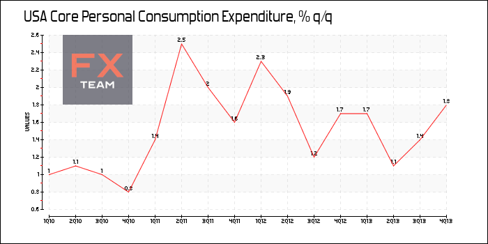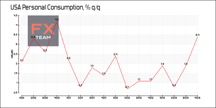 По уточненным данным Бюро экономического анализа, индекс валового внутреннего продукта (ВВП) США вырос на 2,6% за четвертый квартал 2014 года (пересмотрено с 2,4%). Ожидалось, что индекс будет пересмотрен до 2,7%.